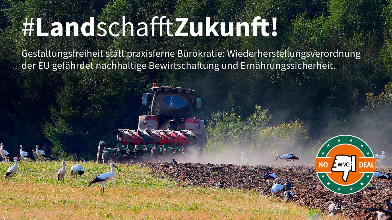 Mit der Kampagne #LandschafftZukunft! geben wir der Praxis eine Stimme und viele Gesichter. Wir zeigen, was die Betriebe leisten und wie die praxisferne Wiederherstellungsverordnung aus Brüssel pragmatische Vernunft und nachhaltige Verantwortung aushebelt. Um die langfristige Versorgung mit Nahrungsmitteln und Rohstoffen zu gewährleisten, klimaresiliente Wälder aufzubauen und Kulturlandschaften dauerhaft erhalten zu können, braucht es keine weiteren regulatorischen Vorgaben, sondern Vertrauen in das Land und alle, die darauf seit Generationen schaffen.